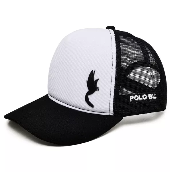 Boné Trucker Casual Aba Curva Ajustável com Telinha Preto e o Branco
