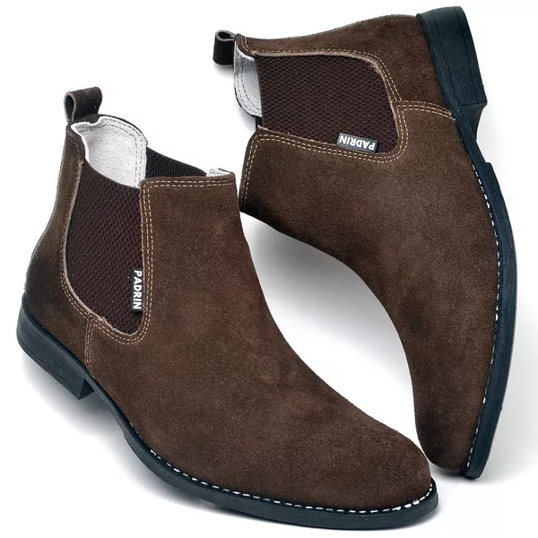 Bota Chelsea Masculina Tradicional Couro Camurça Botina Classica Resistente