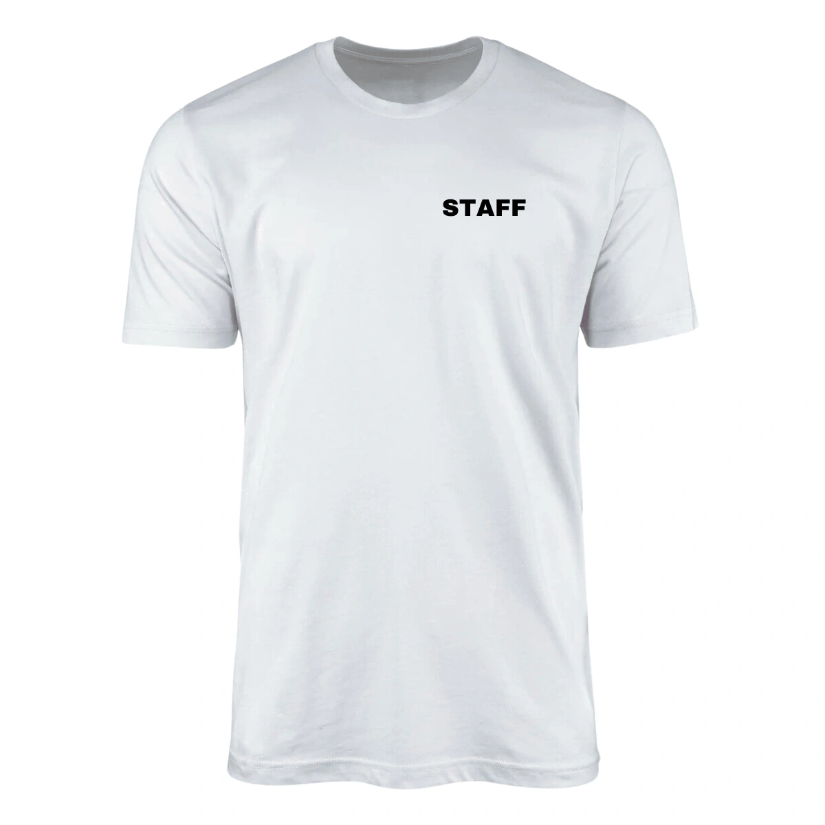 Camiseta estampada STAFF Uniforme nas cores preta e branca, feita em 100% algodão para oferecer conforto e durabilidade. Ideal para equipes, combina design funcional com um toque macio, garantindo estilo e praticidade no uso diário.