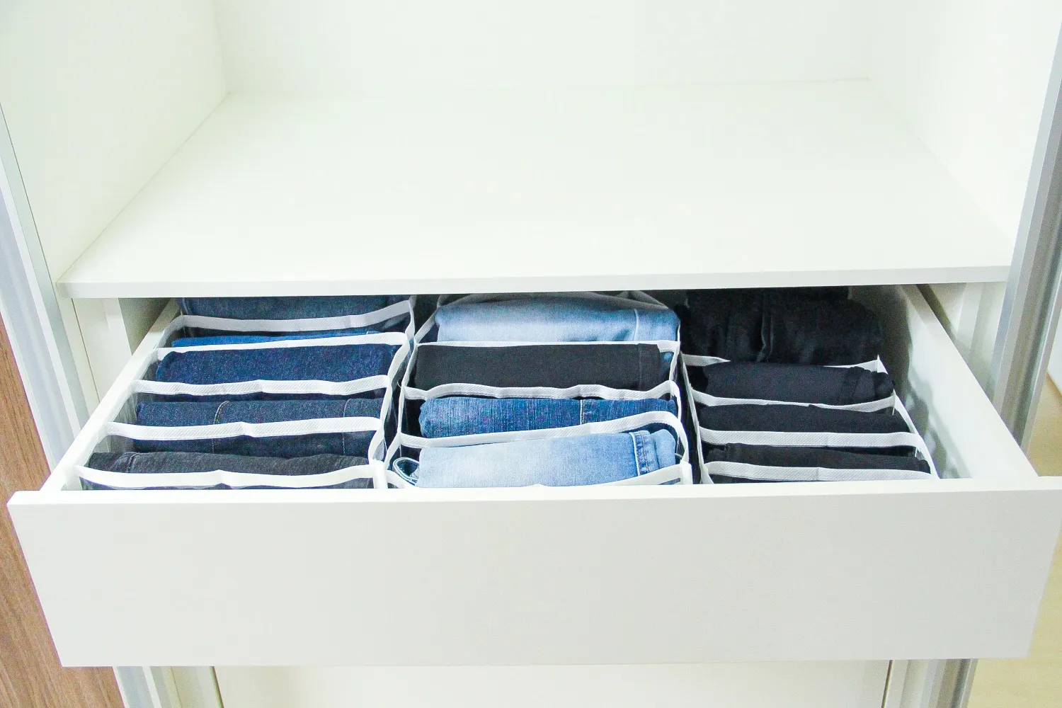 Com 6 divisórias separadoras, você poderá manter suas peças de roupa separadas e fáceis de encontrar.