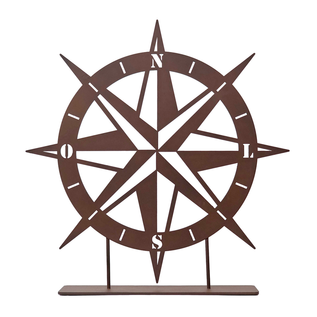 Inspirada nos clássicos instrumentos de navegação, esta peça robusta e elegante é a escolha perfeita para quem tem espírito de explorador. Seu design icônico, representando os pontos cardeais, adiciona um toque de inspiração e um senso de direção a aparadores, estantes ou mesas de escritório. A pintura eletrostática, que simula o charme rústico do aço corten, confere uma textura e uma presença visual marcantes, garantindo que esta escultura dialogue com diversos estilos de decoração, do industrial ao náutico. É o presente ideal para viajantes e sonhadores, uma peça que materializa a busca por novos horizontes e a beleza de ter um norte para seguir.