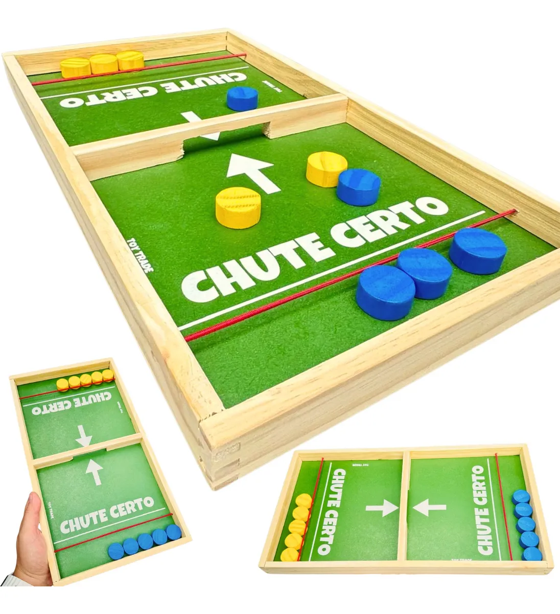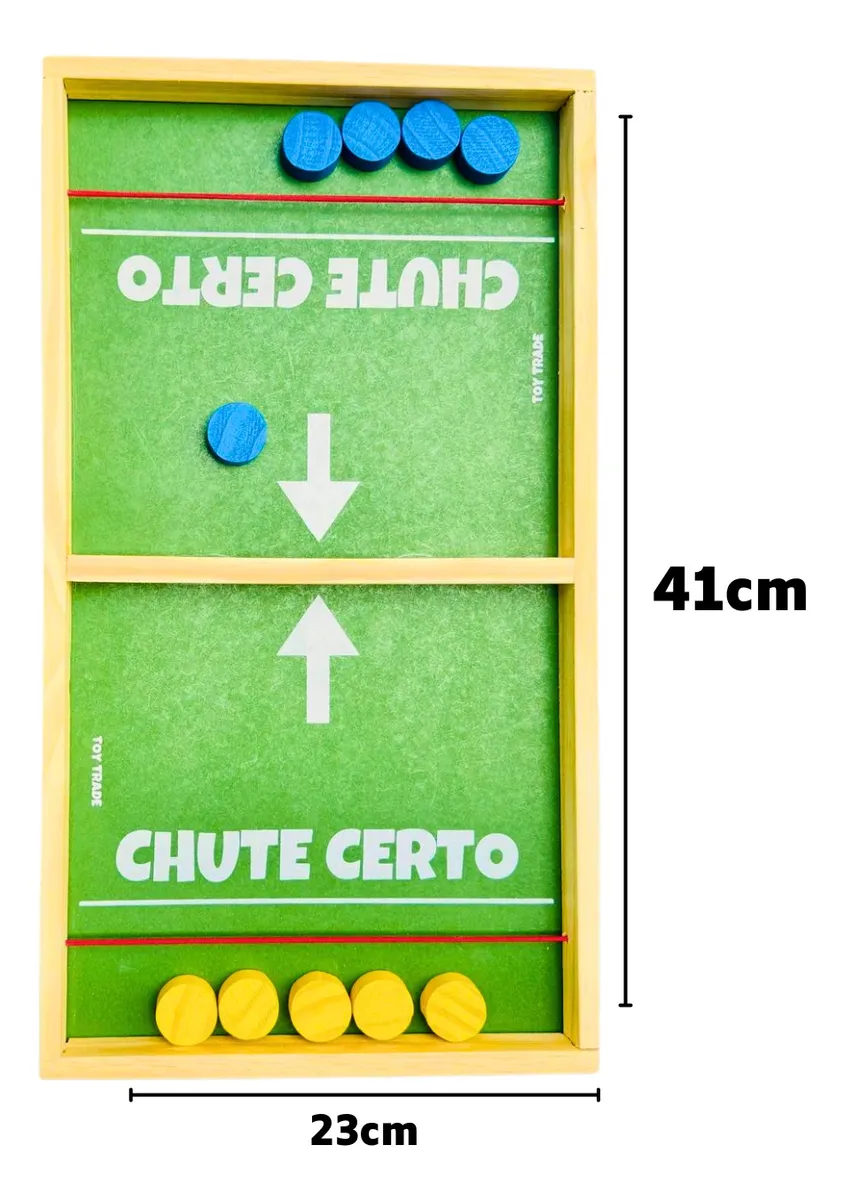 O Chute Certo da Toy Trade é um jogo de tabuleiro divertido e competitivo, produzido em madeira resistente, que promove coordenação motora, raciocínio lógico e agilidade. Ideal para todas as idades, a partir de 4 anos, pode ser usado em casa, escolas ou clínicas terapêuticas.
