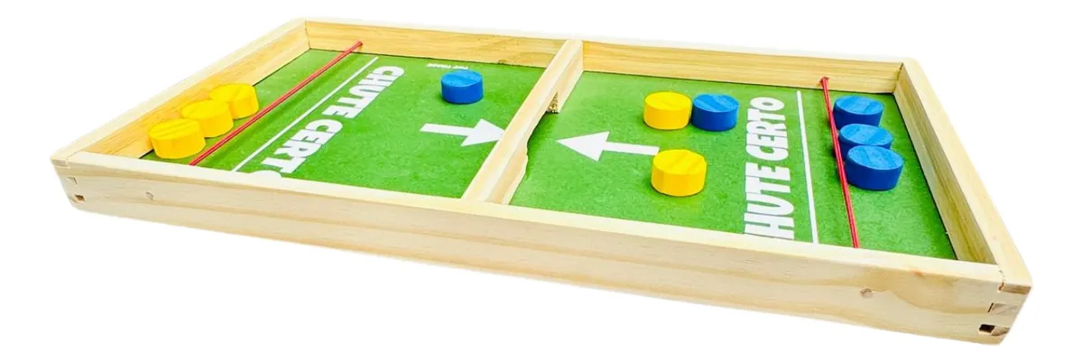 chute certo, puck game madeira, jogo educativo madeira, jogo de tabuleiro infantil, brinquedo pedagógico, brinquedo educativo madeira, coordenação motora fina, brinquedo de agilidade, tabuleiro de lançamento com elástico, brinquedo montessoriano, brinquedo para crianças 4 anos, jogo de competição infantil, jogo educativo para dois jogadores