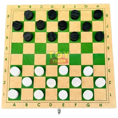 – 1 Conjunto de peças para Damas com padrão oficial (preto e branco)