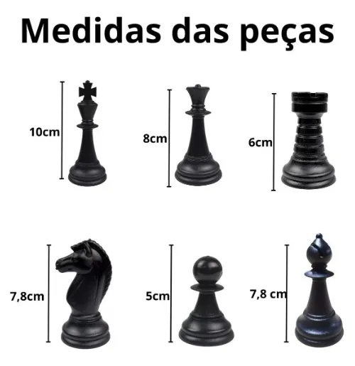 – 32 peças oficiais de xadrez – plástico oco (parte interna leve)